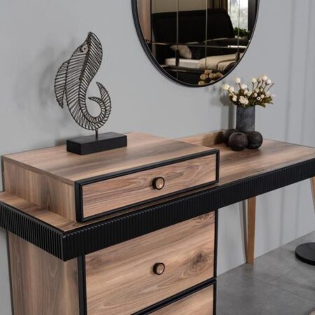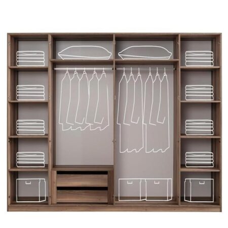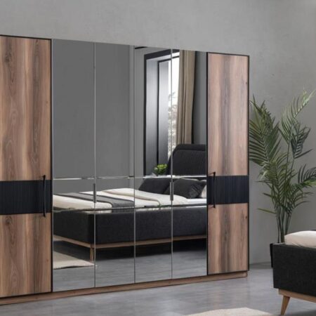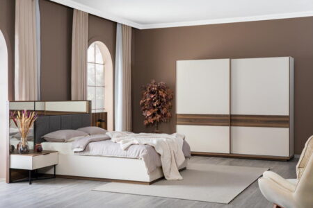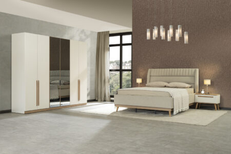 Takım içeriği; 1 adet 6 kapaklı gardırop, 1 adet karyola, 1 adet şifonyer ve aynası ile 2 adet komodinden oluşmaktadır.