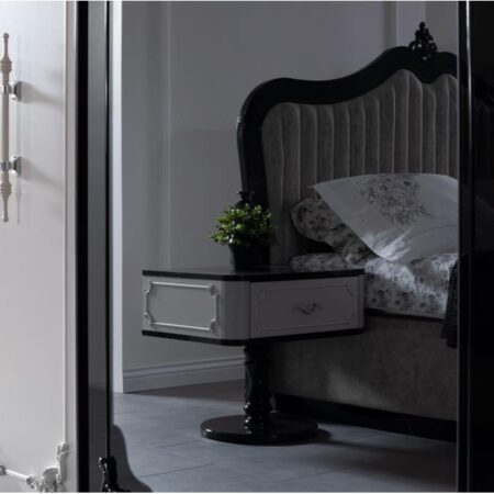 | Komodin Malzemesi | Alt tabla siyah parlak suntalam oluşmakatdır. Gövdesi mozambik mat suntalam yüzeylerinde motif ve profil vardır. |