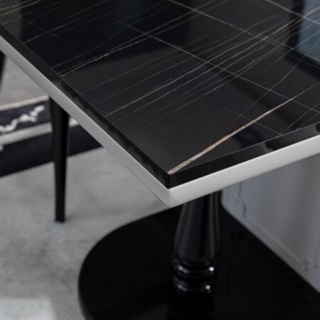| Masa Malzemesi | Üstü sonata lak panelden oluşmaktadır. Alt klapa mozambik boyalıdır. Ayaklar siyah parlak boyalı tornadır. |