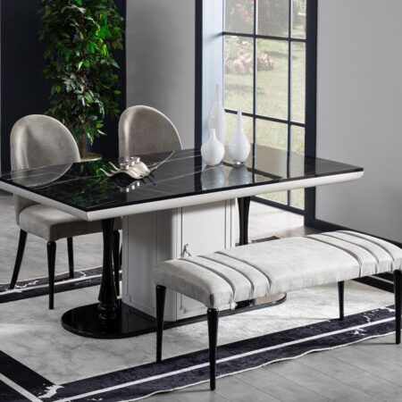 | Takım İçeriği | 1 konsol ve aynası, 1 yemek masası, 4 sandalye ve 1 bençten oluşmaktadır. |