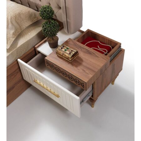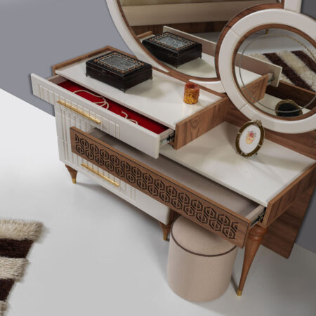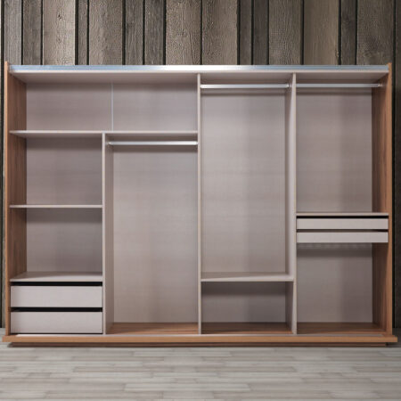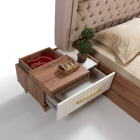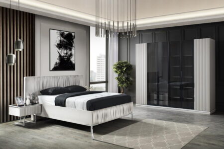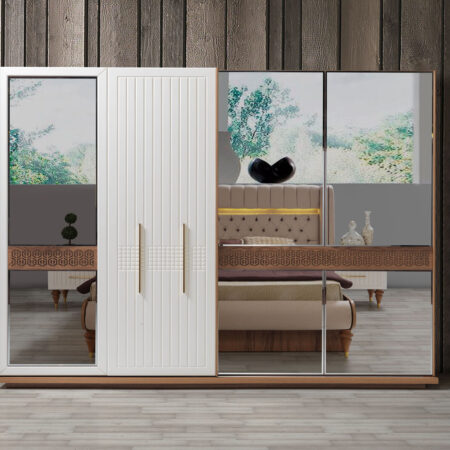 Takım içeriği: 1 adet gardırop, 1 adet karyola, 2 adet komodin, 1 adet şifonyerden oluşmaktadır.