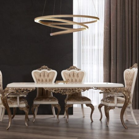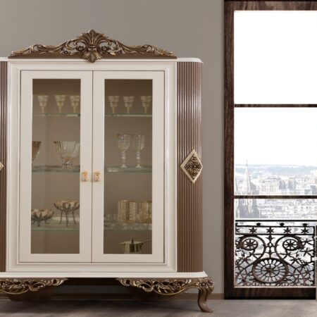 1 adet masa, 6 adet sandalye, 1 adet konsol ve vitrinden oluşmaktadır.