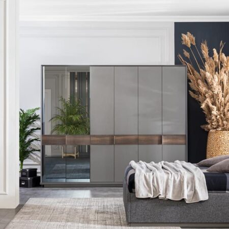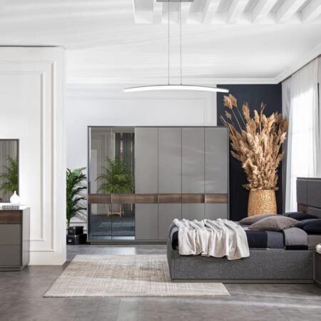 Takım içeriği; 1 adet gardırop, 1 adet karyola ve başlık, 2 adet komodin, 1 adet şifonyer ve aynasından oluşmaktadır.