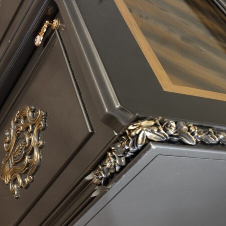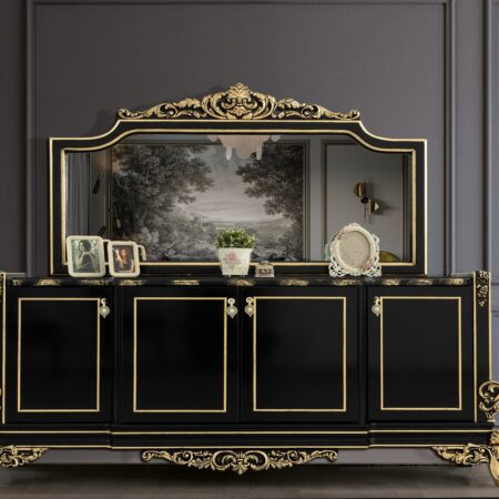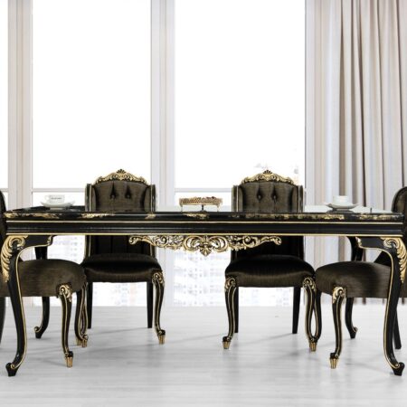 1 adet masa, 6 adet sandalye, 1 adet konsol ve vitrinden oluşmaktadır.