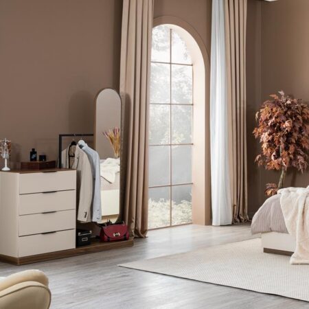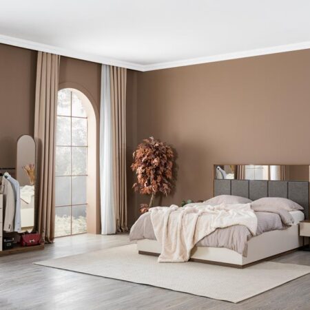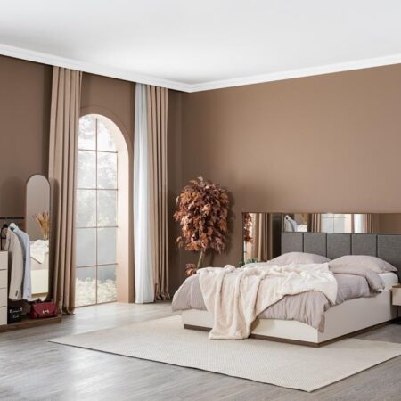Takım içeriği: 1 adet gardırop, 1 adet 160’lık karyola, 2 adet komodin, 1 adet şifonyer ve aynadan oluşmaktadır.