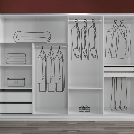 Takım içeriği: 1 adet gardırop, 1 adet karyola, 2 adet komodin, 1 adet şifonyerden oluşmaktadır.