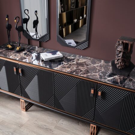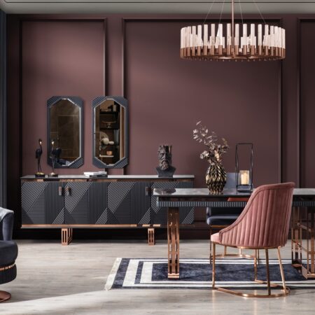 1 adet açılır masa,1 adet konsol,2 adet konsol aynası ve 6 adet sandalyeden oluşmaktadır.